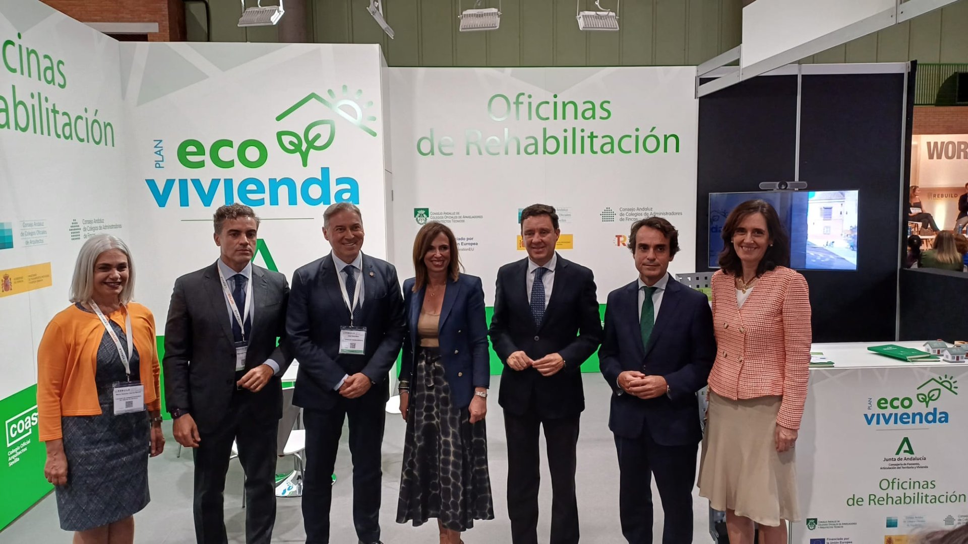 Una cita en la que el Consejo Andaluz de la Arquitectura Técnica tiene una presencia relevante con las oficinas de rehabilitación abiertas en las ochos sedes colegiales de la comunidad. De hecho, Díaz visitó el espacio expositor y recordó que dentro del Plan Ecovivienda, que gestiona los fondos europeos, "se han asignado 500 millones de euros a la rehabilitación de barriadas, edificios y viviendas en Andalucía con el objetivo de reducir el consumo energético en torno al 30%.